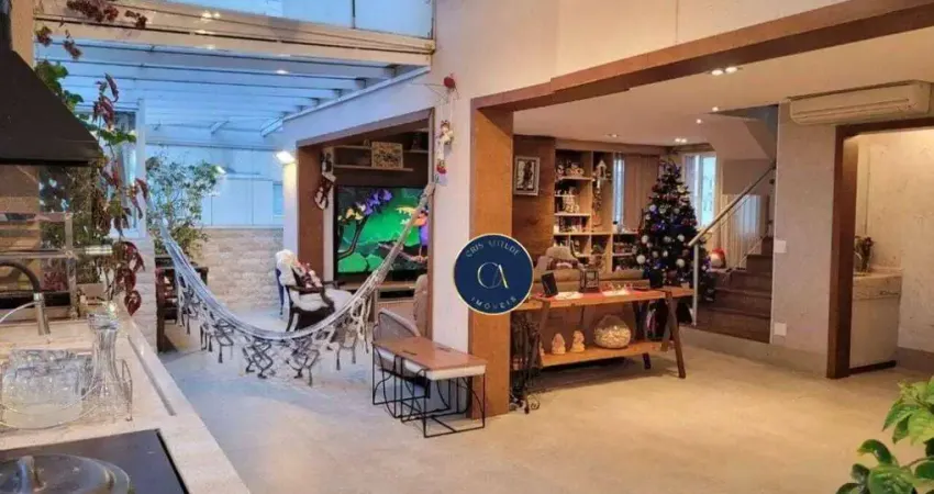 O imóvel foi planejado para proporcionar conforto e bem-estar em cada detalhe. No pavimento superior, estão os quatro dormitórios, sendo três suítes, todos climatizados com ar-condicionado, garantindo noites tranquilas e agradáveis. No pavimento inferior, a ampla sala integrada ao espaço gourmet e ao spa cria um ambiente perfeito para reunir amigos e familiares, promovendo momentos de lazer e descontração. A sacada oferece um espaço extra para relaxar e apreciar a vista da cidade, enquanto a cozinha e a copa funcionais facilitam o dia a dia. O imóvel ainda conta com lavanderia bem distribuída, três vagas de garagem e um depósito privativo, que agregam praticidade e conveniência à rotina dos moradores.