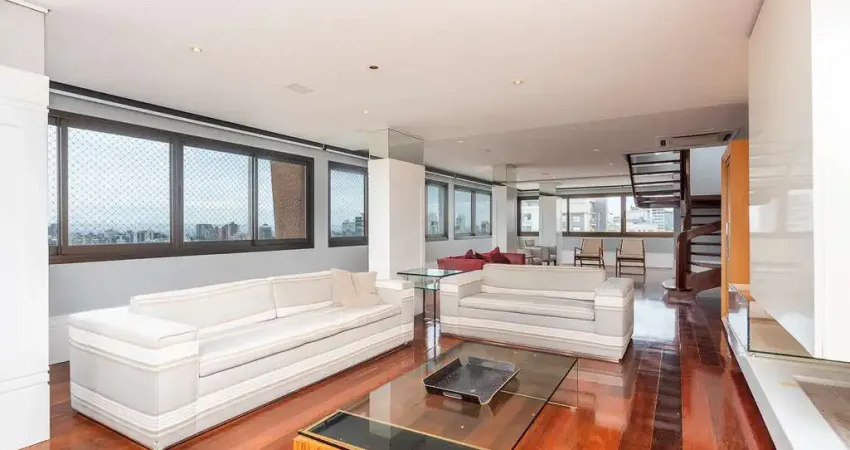 Cobertura totalmente mobiliada com 600m², 5 dormitórios, 5 suítes sendo 2 com closet e 1 máster com hidromassagem e 6 vagas de garagem.