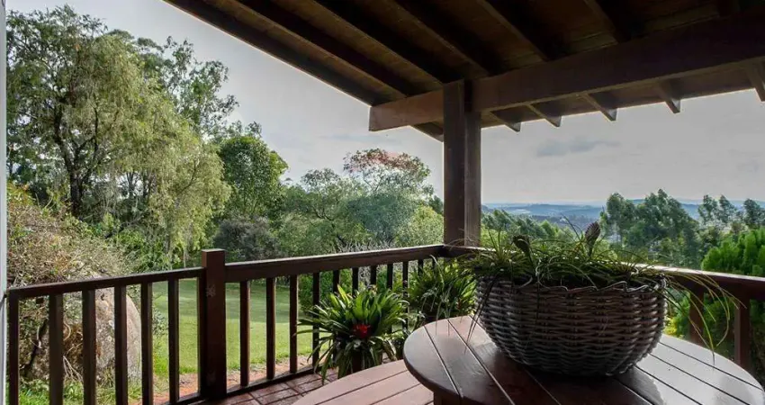Casa sede moderna (800 m²): 4 quartos (2 suítes), home theater, sala de jantar, sala de estar ampla, varanda com vista, cozinha gourmet, sala envidraçada, salão de jogos, adega climatizada, garagem coberta para 4 carros.