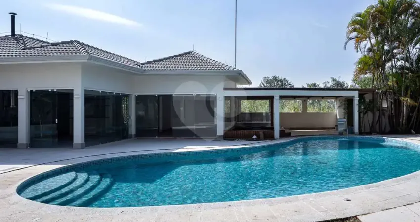 Casa à venda no bairro Carapicuiba. - Excelente localização, via de acesso ao km 23 da Rodovia Raposo Tavares em meio ao verde e em harmonia com a natureza. - Projeto de construção clássico com contemporaneidade!!! Onde encontramos materiais nobres e muito bom gosto. - Pisos em mármores Botticino, Crema Marfim, tábuas largas de Ipê e acabamento com Bona Traffic. - Imponente hall de entrada. - Living com ambientes integrados. - 4 salas. - Sala de visitas com lareira e bar completo em Mogno e madeira Rádica. - Sala de Jantar. - Sala de TV. - Family Room. - Jardim interno. - Lavabo. - Escada em mármore. - Sala íntima. - 5 suítes com pisos de tábuas de ipê, 4 delas com closet e a master com Hidro. - Ampla copa/cozinha americana com armários. - Despensa. - Lavandeira bem espaçosa. - Área gourmet com forno de pizza, forno mineiro, churrasqueira, bancada, duas pias e coifa. - Salão de festas. - Piscina nova com 16 metros de comprimento, cascata, prainha e deck solarium. - Banheiro, vestiários. - Local para sauna e Hidro. - Quadra de Tênis ( metragem oficial) e Poliesportiva. - Paisagismo já implantado. - Apartamento externo completo. - Estacionamento para 9 carros. - Depósito. - Canil. - Ref.: REO707498