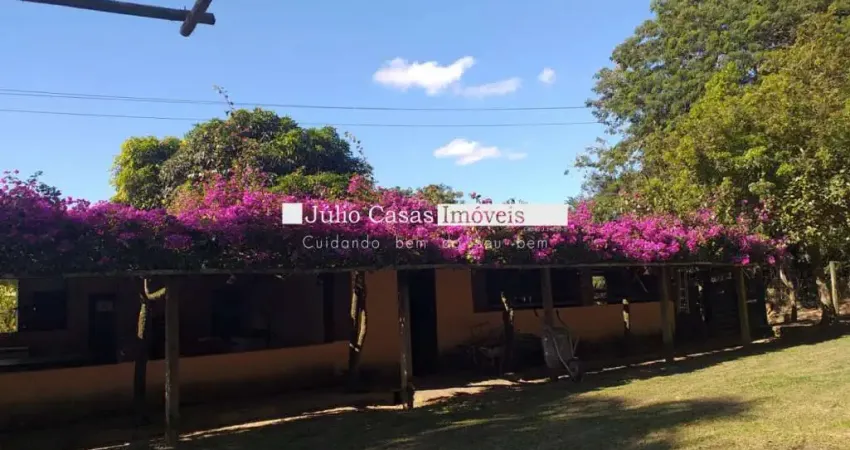 cozinha com despensa e fogão a lenha, área gourmet com piscina com cascata, salão de 65m² com churrasqueira, pia, banheiro e despensa. Grande campo aberto podendo ser usado para pasto ou plantação, 2 canil em alvenaria, propriedade com cerca comum e cerca elétrica para contenção de bovino.