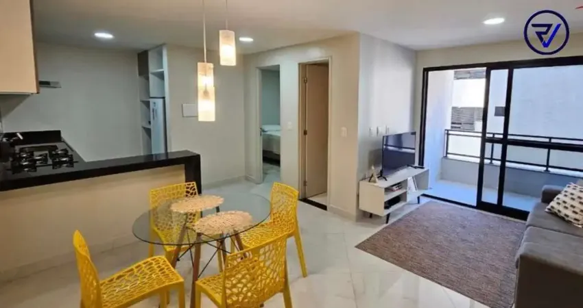 Apartamento com 43m², 1 quarto, 1 banheiro, cozinha americana, varanda, sala. Mobiliado e projetado.