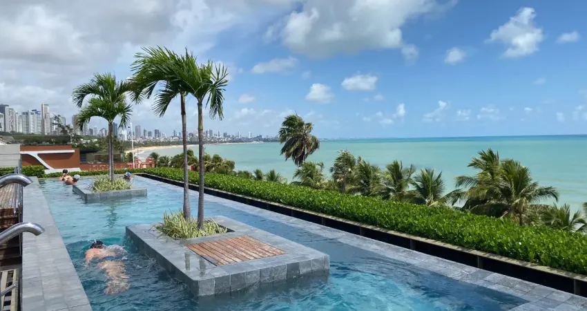 Flat beira-mar no cabo branco com rooftop, borda infinita e vista para o mar