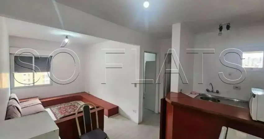 O apartamento possui 35m² bem distribuídos, é totalmente mobiliado e equipado, contando com 1 dormitório, sala integrada, cozinha americana completa e 1 vaga de garagem. Ideal tanto para moradia quanto para investimento imobiliário em flat com alta liquidez, em uma região com forte demanda por locação.