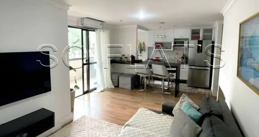 Este flat na Vila Olímpia tem fácil acesso ao transporte público.