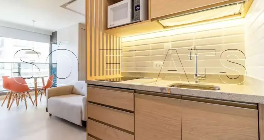 Studio mobiliado no Itaim Bibi para morar ou investir, varanda e lazer completo