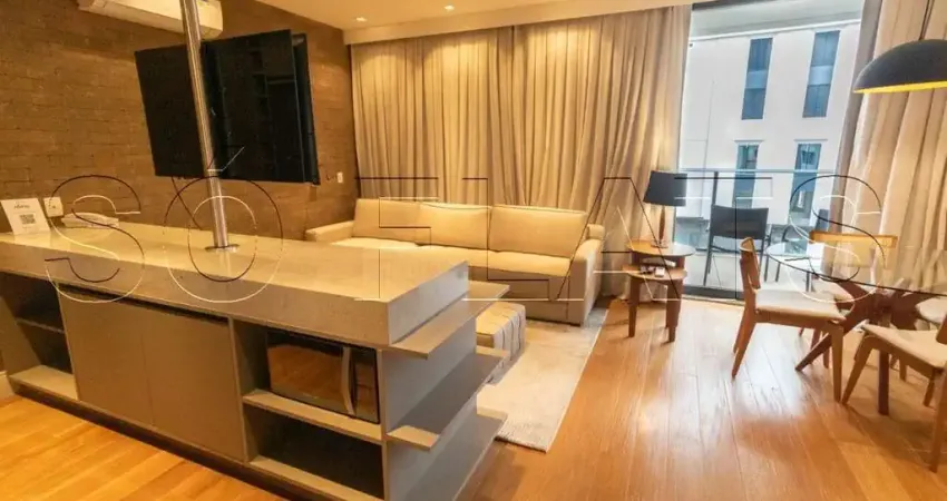 Flat para locação com 35 m² bem distribuídos amplo living com lavabo e terraço. vaga de garagem, 1 Dormitórios, Cozinha planejada, sacada, 1 vaga de garagem, em excelente localização no Itaim Bibi.