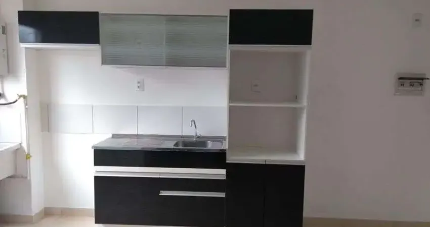 Kinect de 30,80m², com 1 dormitório, sala, cozinha e área de serviço, armários na cozinha e banheiro, em condomínio com lavanderia coletiva, playground, academia, salão de festas e churrasqueira.
