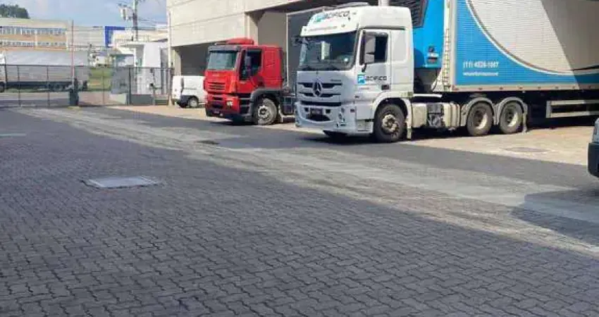 Área Construída de 1.600 m²,pe direito de 12 metros, piso de alta resistência de 5 toneladas por m², 3Docas para caminhões ou carretas e 8 vagas.