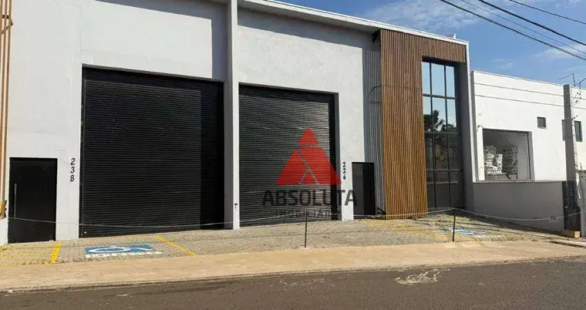 Galpão industrial localizado em um condomínio próximo a Rodovia Luiz de Queiroz (SP-304). O imóvel conta com 326 m² de área útil, distribuídos entre espaço comercial com 02 lavabos, mezanino com 01 escritório e lavabo, recuo frontal para 2 veículos.