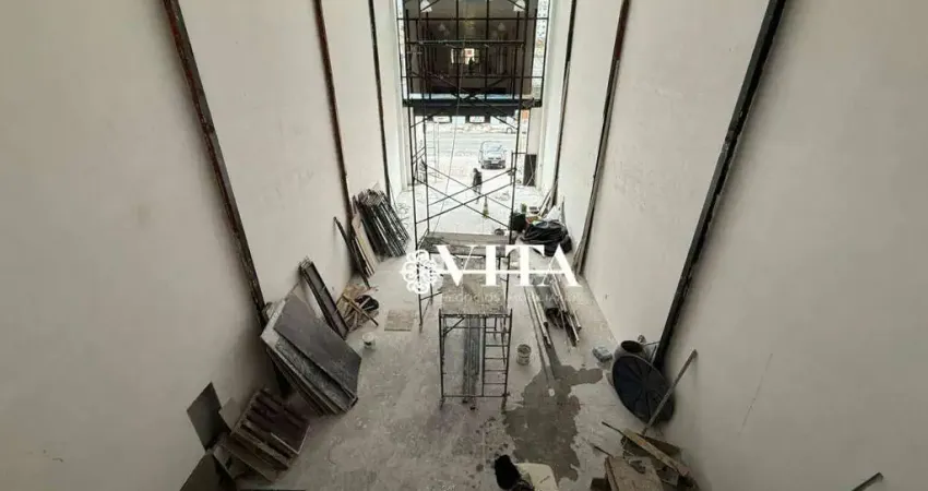 Galpão com 350m2 de área construída total e pé direito de 9m de altura, sendo dividido em térreo + mezanino, 4 banheiros sendo 2 no térreo + 2 no mezanino, além de recuo na frente com 2 vagas de carro + 1 de moto e recuo nos fundos sendo quintal.