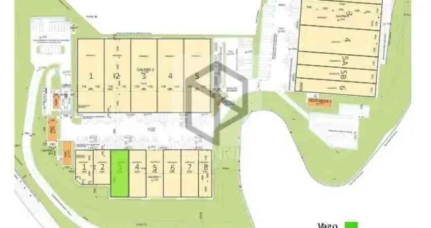 Galpão em Viana para alugar com extensa plataforma de docas, pé direito alto, piso de alta capacidade de carga e iluminação natural, que confere maior economia e eficiência energética.