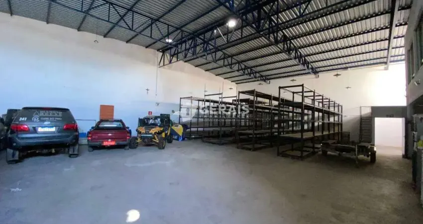 GALPÃO APROX. 600M² COM: 02 BANHEIROS COM ESPELHO, COZINHA, DESPENSA, 02 ESCRITÓRIOS, LUMINÁRIA, PISO EM CIMENTO LISO E CERÂMICA.