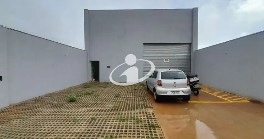 Galpão com 345 m², sendo 245 m² vão livre com 2 vestiários, uma pia, mezanino com 100m² com 1 escritório. Estacionamento para aproximadamente 4 veículos.