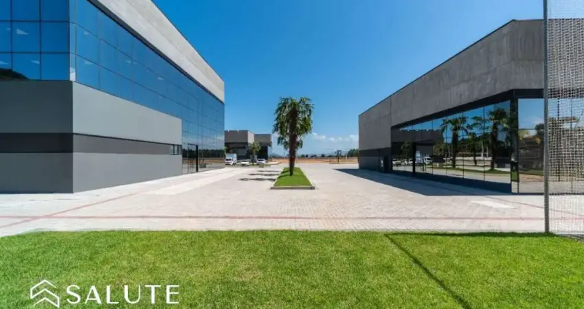 Em uma área industrial com pavimentação, calçadas em paver, iluminação em led, segurança completa, salas de reuniões e auditórios equipados e heliponto homologado.