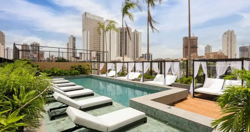 Piscina no rooftop com vista para a cidade