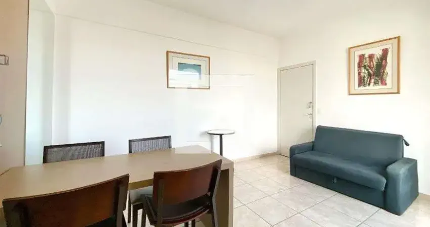 Sobre o imóvel: 1 quarto sala cozinha americana, cama casal, AC, geladeira, TV; porteiro 24h, 2 elevadores, 1 vaga garagem