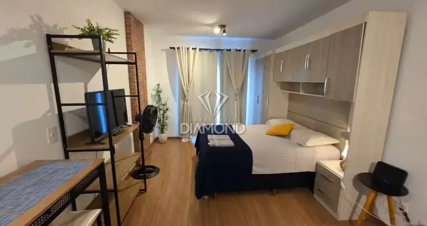 Studio no 9°, mobiliado e decorado, com 30,09m² de área privativa. Conta com uma pequena sacada, ambientes integrado, excelente iluminação natural. Compacto, moderno e funcional.