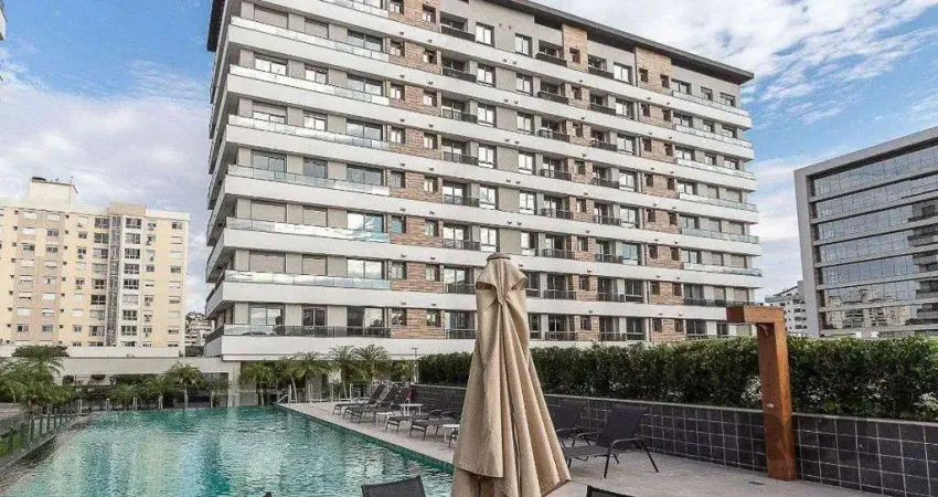 Studio de 37m², com 1 dormitório, living, cozinha com churrasqueira e 1 vaga de garagem escriturada no empreendimento mais completo da região e diferenciais com alto padrão construtivo Maiojama.