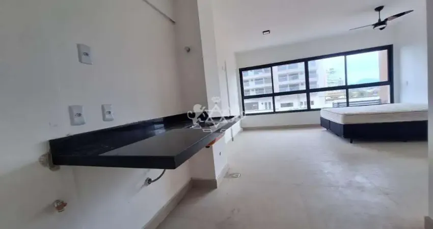 O studio oferece um ambiente moderno e funcional, com uma janela grande proporcionando uma vista lateral encantadora do mar. Ideal para quem busca um imovel novo em um predio completo com diversas opcoes de lazer e comodidade.