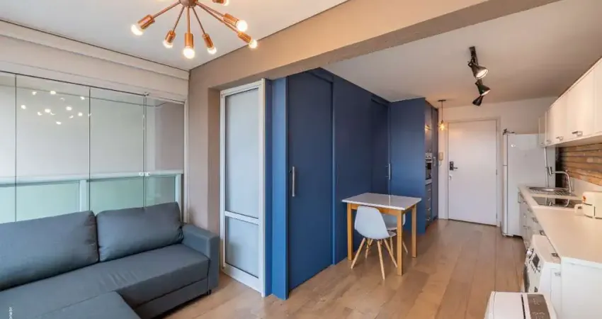 Este studio de 34 m² foi projetado para quem busca funcionalidade sem abrir mão de estilo e aconchego. O ambiente é totalmente mobiliado, conta com móveis planejados de excelente qualidade e apresenta um layout inteligente, que otimiza cada espaço e torna o dia a dia muito mais prático.