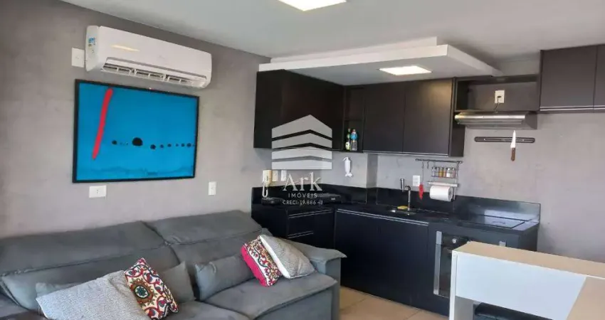Studio Campo Belo 43 m², 1 dormitório, 1 banheiro, sala e varanda, mobiliado, 1 vaga, lazer.