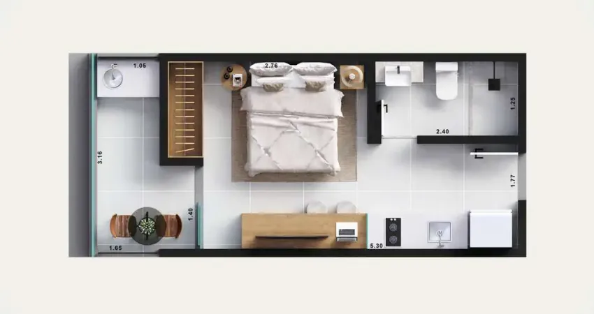 São apenas 49 studios, projetados para oferecer praticidade, tecnologia e valorização. Todas as unidades contam com fechadura eletrônica e ponto para máquina de lavar na varanda, garantindo funcionalidade e otimização de espaço.