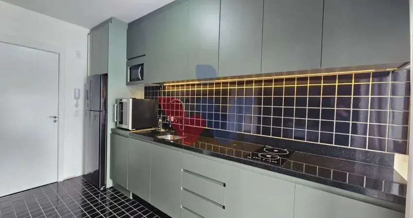 Studio de 25,16 m² totalmente mobiliado e equipado com utensílios. Móveis planejados, cama box, piso moderno, banheiro com box Blindex, cortinas sob medida com blackout para momentos de descanso mais aconchegantes.