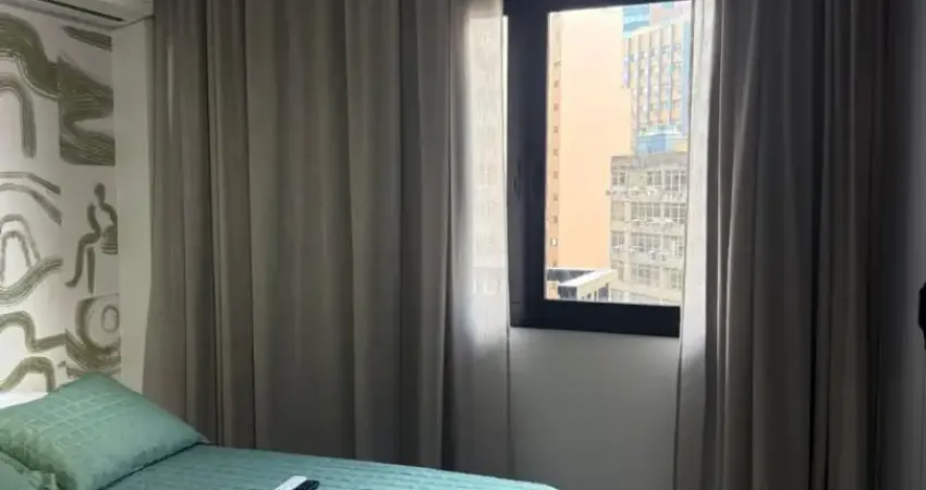 Studio mobiliado com quarto, pequena sala, banheiro e cozinha. Prédio com total infra estrutura e segurança.
