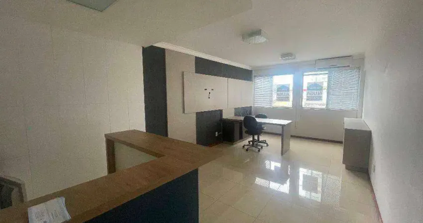 Apto tipo Kitnet, com 35m² de área, mobiliada com cozinha e escritório.