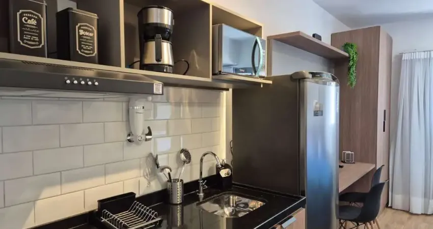 Localizado no tradicional e nobre bairro do Paraiso esse espetacular Studio com a grife Eztec, medindo 21,06m2 totalmente mobiliado com marcenaria de qualidade e extremo bom gosto. Possui ar condicionado, os ambientes de quarto com belíssima cama de casal, armários embutidos, cozinha em conceito americano com geladeira, cooktop elétrico, microondas, utensílios de cozinha e limpeza, aspirador, vassoura, filtro de agua, cafeteira, armários embutidos, o banheiro é completo, inclusive com secador de cabelos, o ambiente de sala tem uma bancada multifuncional, cadeiras e uma belíssima Smart TV, internet, e um terraço que proporciona uma vista incrível.