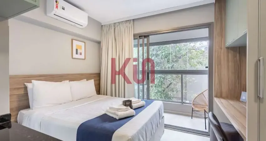 Studio de Luxo em Condomínio Exclusivo em Indianópolis, São Paulo-SP: 1 Quarto, 1 Suíte, 1 Banheiro, 20m². Venha Conferir!