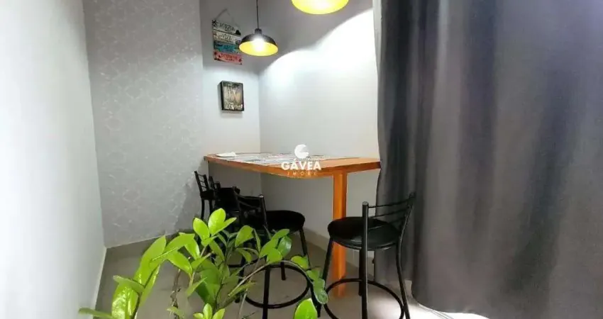 kitnet mobiliada e reformada muito charmosa, prontinha para morar, ou para investimento em aplicativos como AIRANB, pois o condomínio permite, muito bem localizada, de frente para a praia do Itararé em São Vicente, possui fogão, geladeira, cama box, micro-ondas, TV, sofá e utensílios, um ótimo investimento, perto de transporte publico, VLT, e comércios em geral.