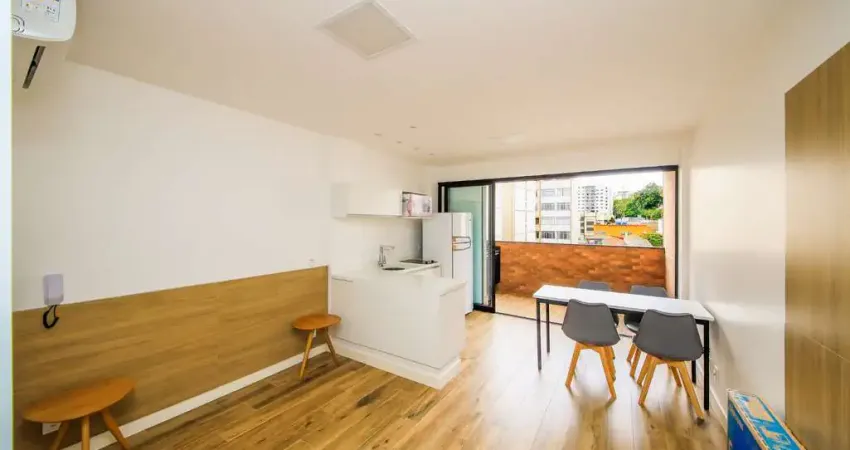 Em ambiente totalmente integrado possui armários, bancada para estudo, painel para Tv, criados, ar condicionado, geladeira, microondas, tv, cooktop, mesa com cadeira. E uma varanda goumet ainda para dar mais conforto ao seu dia a dia.