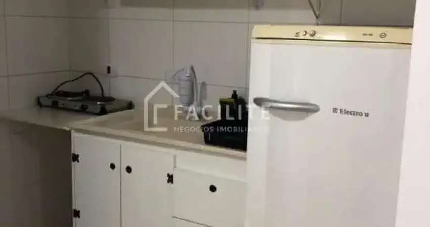 Ambientes integrados, salaquarto com piso laminado, tetos com gesso e iluminação instalada, cozinha e banheiro com piso cerâmico e azulejos até o teto, com vaga de garagem coberta. Face leste.