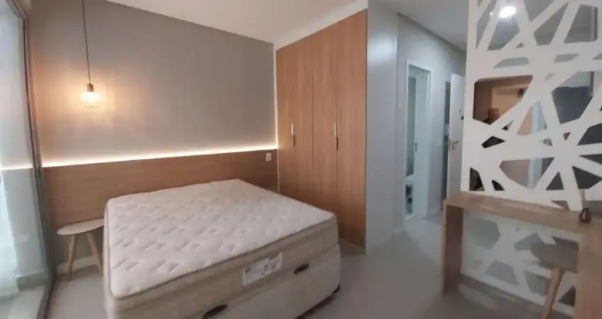 Studio para locação totalmente mobiliado com ar condicionado, no Helbor Patteo Bosque Maia, com 29m². Uma vaga de garagem. Condomínio com lazer completo, com piscina, churrasqueira, academia, salão de festas e etc.