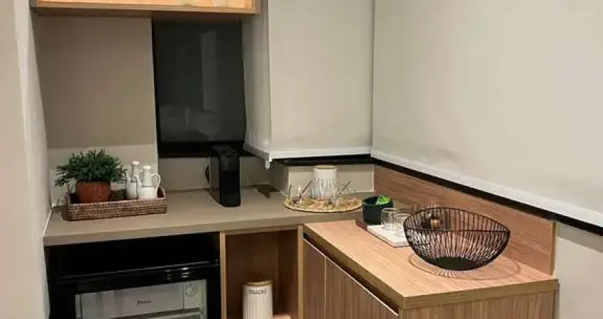 Imóvel conta com 32 metros quadrados, decoração moderna, quarto amplo e bem localizado, banheiro social, copa com espaço para sala de jantar, uma vaga de garagem.