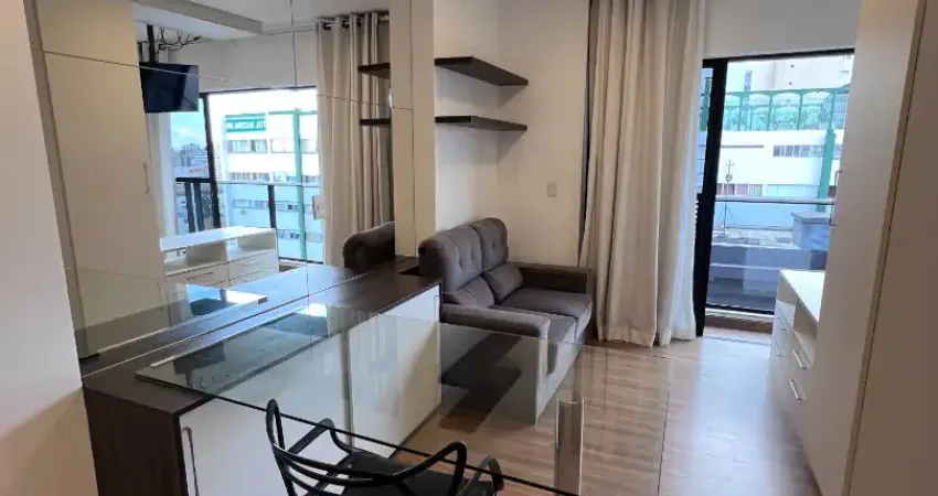 Studio integrado e mobiliado, em andar alto e em região nobre e central de Curitiba, face Leste e Norte, em frente ao Shopping Estação e a UTFPR, próximo a UFPR, FAE e PUC PR. É amplamente iluminado, tem ventilação cruzada no apartamento e ventilação natural no banheiro. Conta com móveis planejados, cama de casal, sofá, eletrodomésticos (microondas, cooktop, geladeira grande, smart tv), cortina com blackout e iluminação abundante de LED. Edifício condomínio clube, com academia ampla, mercadinho, piscina aquecida, solarium e portaria presencial 24 horas. Aluguel direto com proprietário.