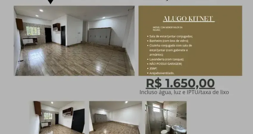 Valor: R$ 1.650,00 (mil, seiscentos e cinquenta reais) e inclui água, luz e IPTU/taxa de lixo.