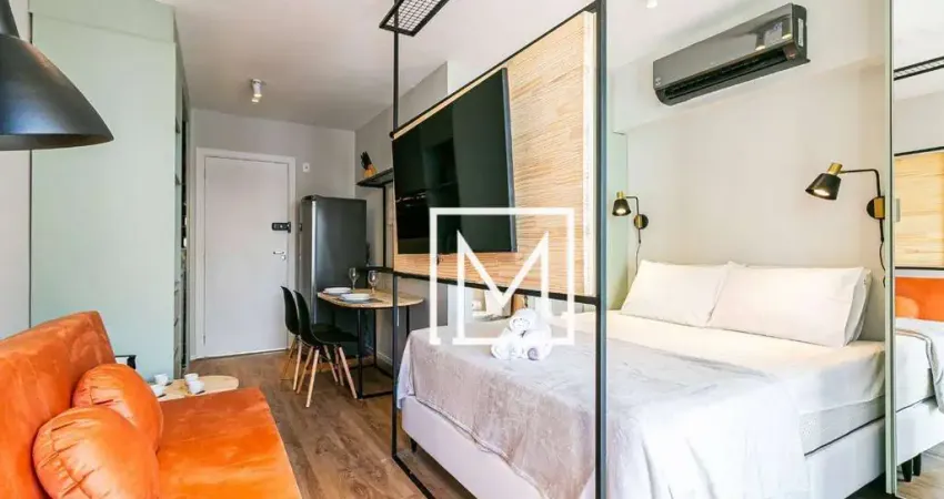 Studio de 25 m² totalmente mobiliado, decorado e com ar condicionado.