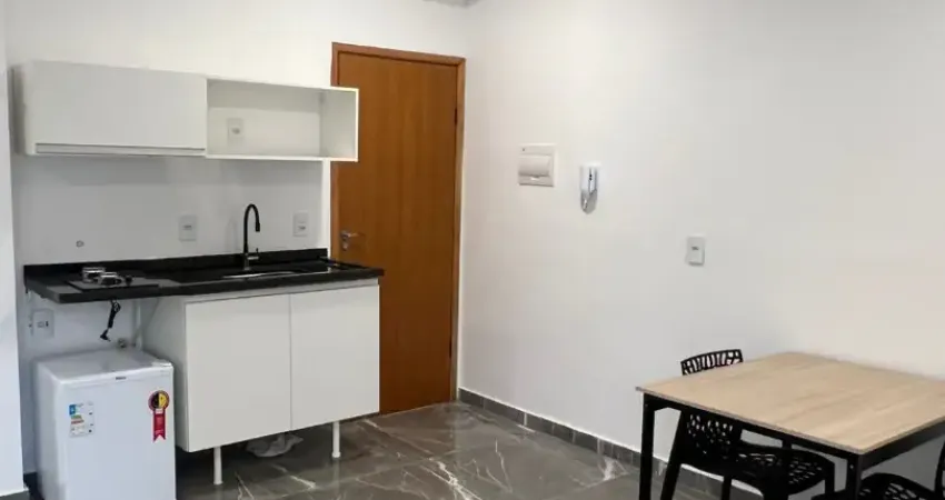 Studios com porcelanato, armário, fogão cooktop de 2 bocas embutido, frigobar. Tudo novo!