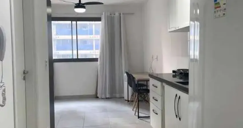 Studio SEMIMOBILIADO para Locação no bairro Vila Clementino com 24 m², com 1 dormitório com guarda-roupas, 1 banheiro com box de vidro, cozinha com refrigerador, cooktop, armários planejados, bem arejado e iluminado.