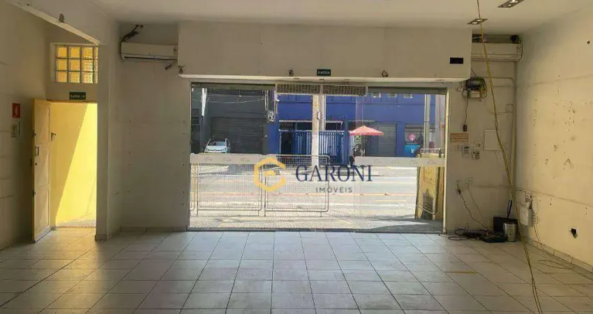 150 m² distribuídos em dois pavimentos. Térreo com salão amplo, vitrine, copa/cozinha e banheiro. Piso superior com duas salas, recepção, banheiro, terraço e ar-condicionado.