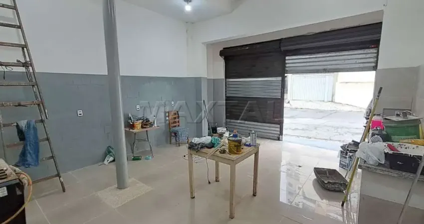 Casa comercial com salão de 35m², ao nível da rua, com banheiro, cozinha e escritório com 18m². Duas portas de aço