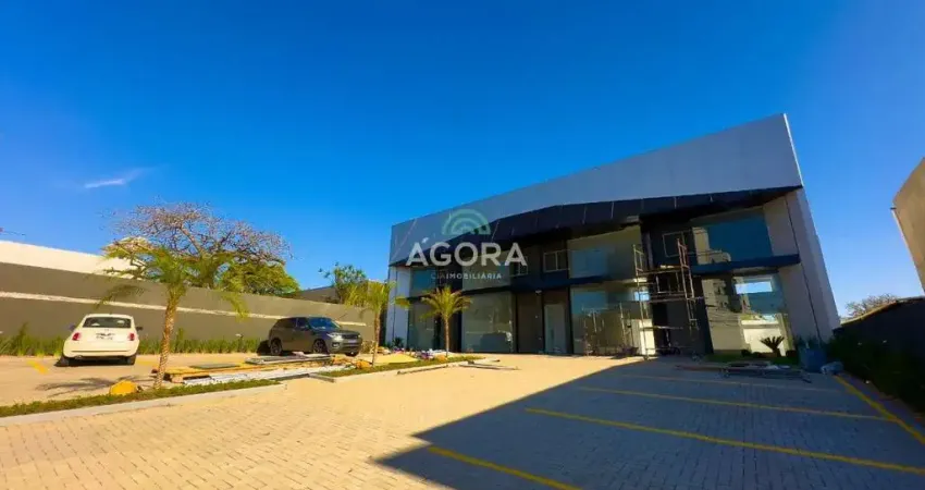 Ágora Cia Imobiliária Aluga: Loja comercial com 131m² de área privativa, sendo 95m² no térreo e 36m² de mezanino. O imóvel conta com revestimento em porcelanato, escada com acabamento em inox, rebaixo em gesso e luminárias instaladas.