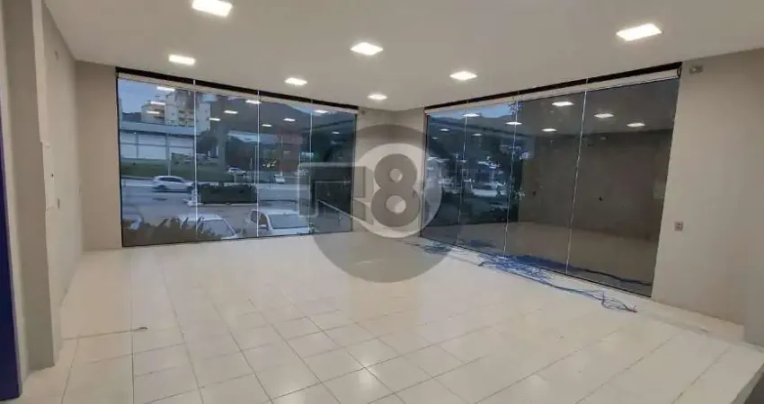 Ampla loja comercial frente com vitrine, mezanino, 2 banheiros, ar condicionado central, 3 vagas de garagem, piso em cerâmico, 226m³ privativos e 437m² de área total.