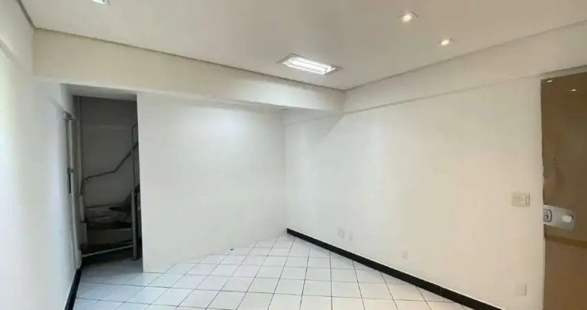 Loja com aproximadamente 43m² com teto rebaixado em gesso, iluminação planejada, mezanino.