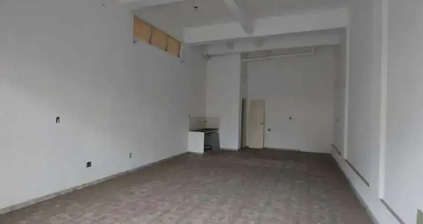 Imóvel amplo com 50 m² e pé direito de 4,50 m, possui ainda um banheiro e uma pia de granito fixada próximo ao banheiro.