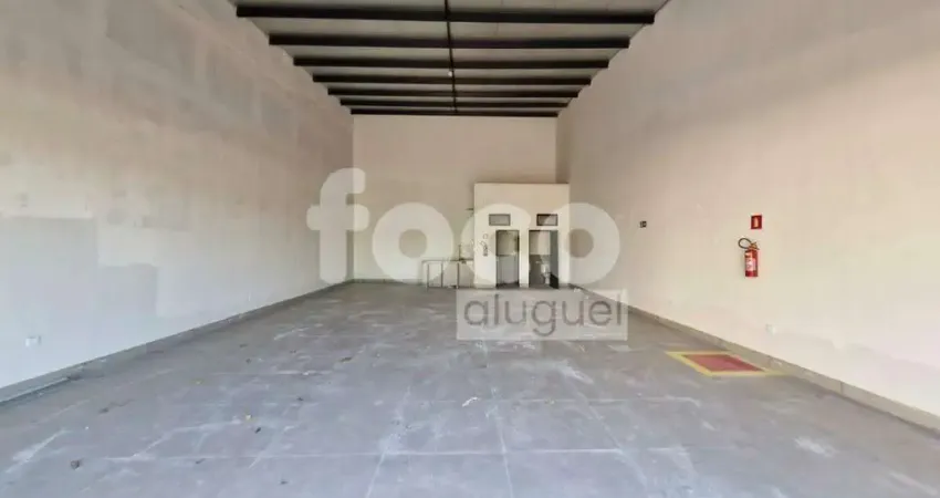 Loja comercial com localização estratégica, estacionamento recuado, porta automatizada, 135 m² vão livre, 02 banheiros com acessibilidade, copa, pé direito duplo.
