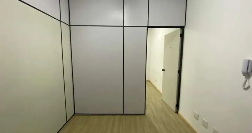 Sala comercial com 41,66 metros, possui divisórias internas, piso laminado e 01 banheiro (link removido)ício com elevador e portaria.
